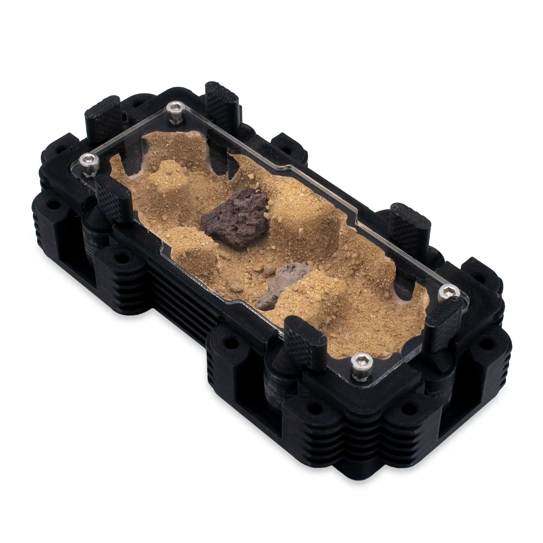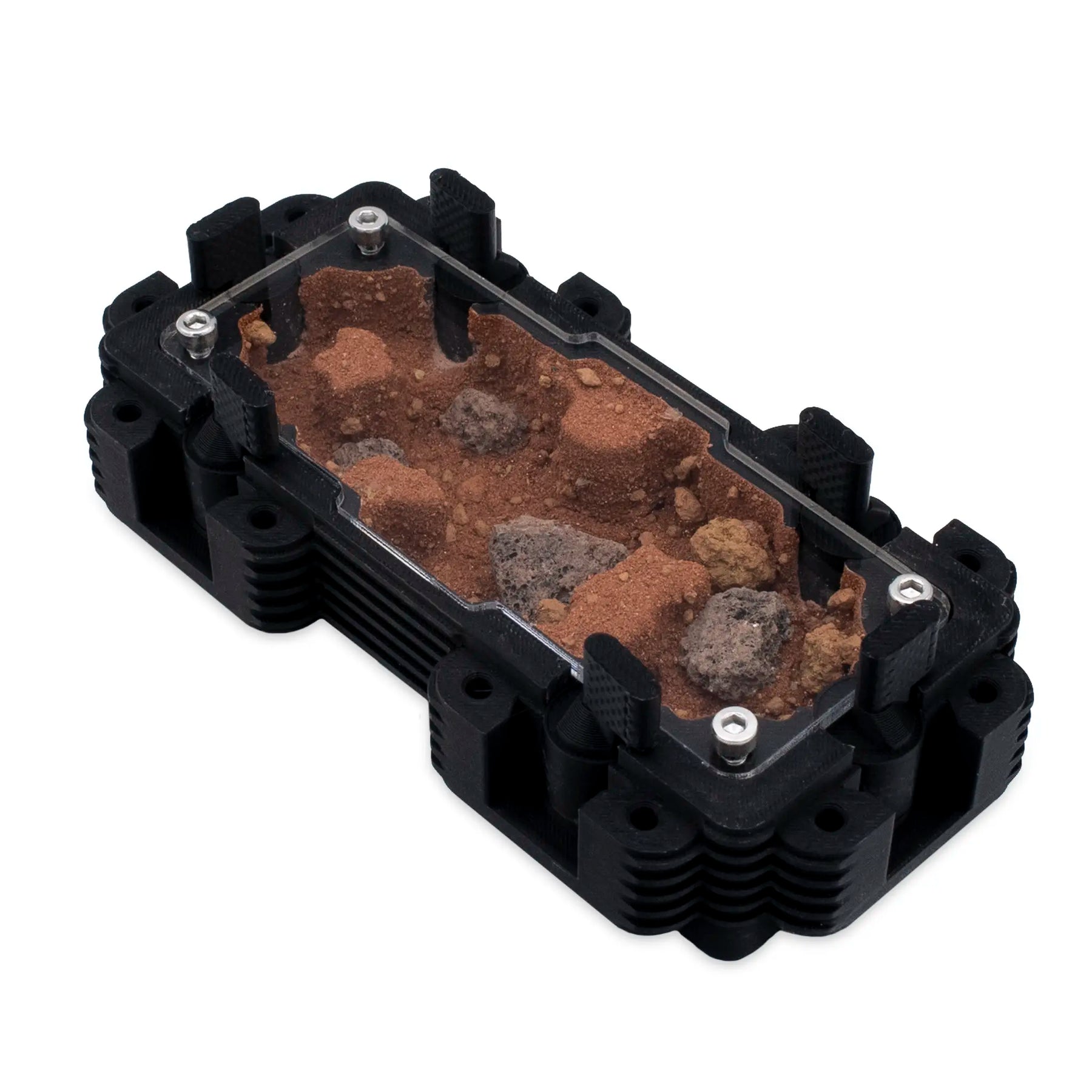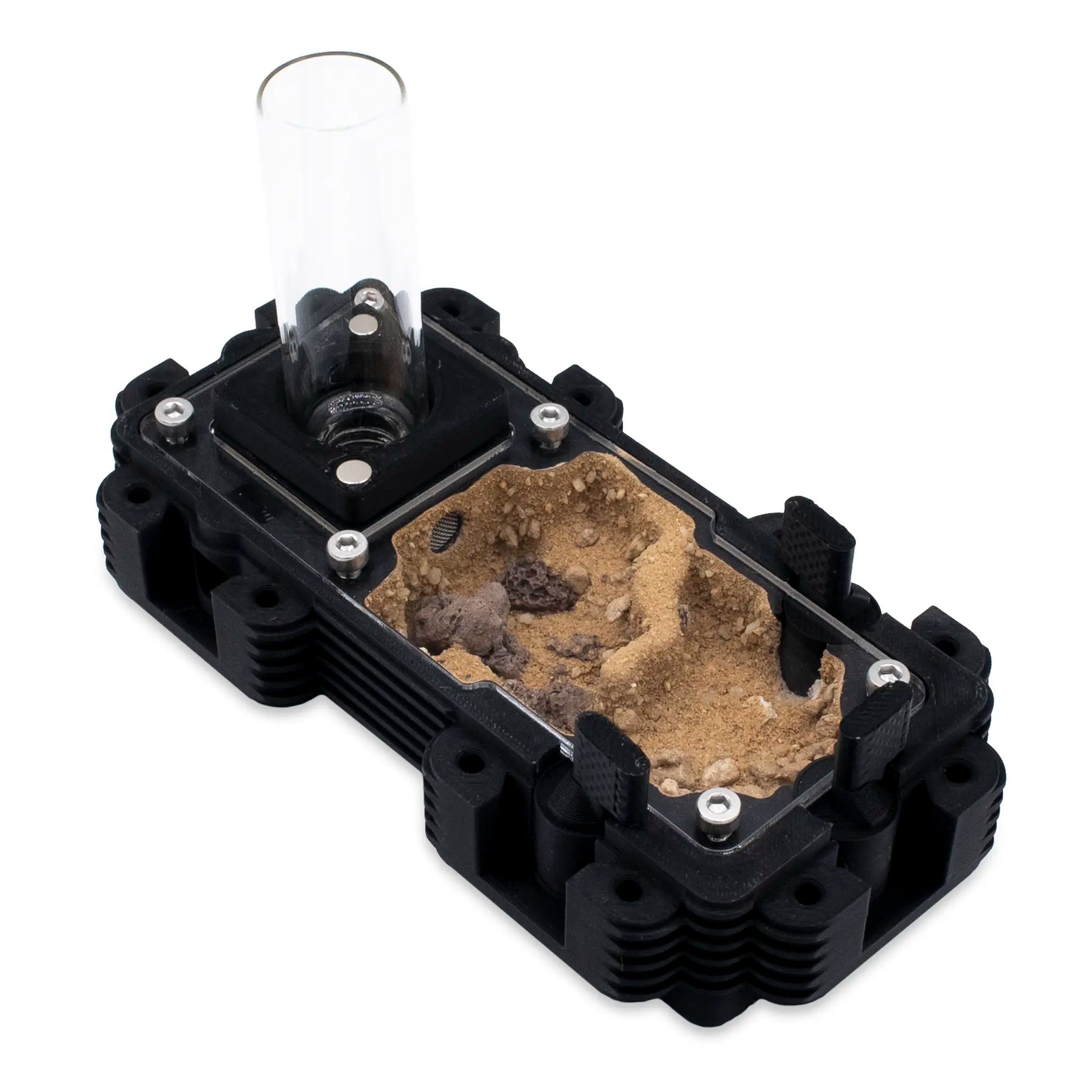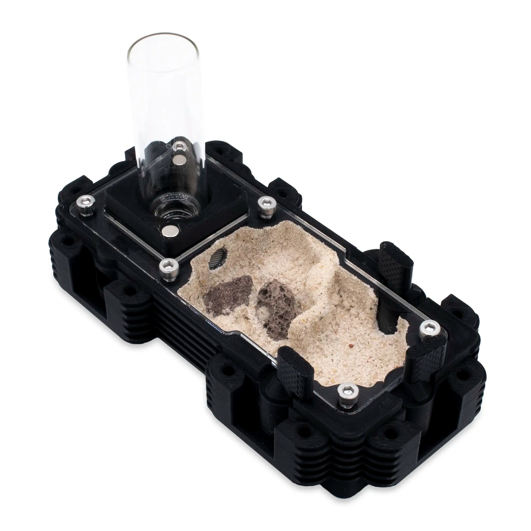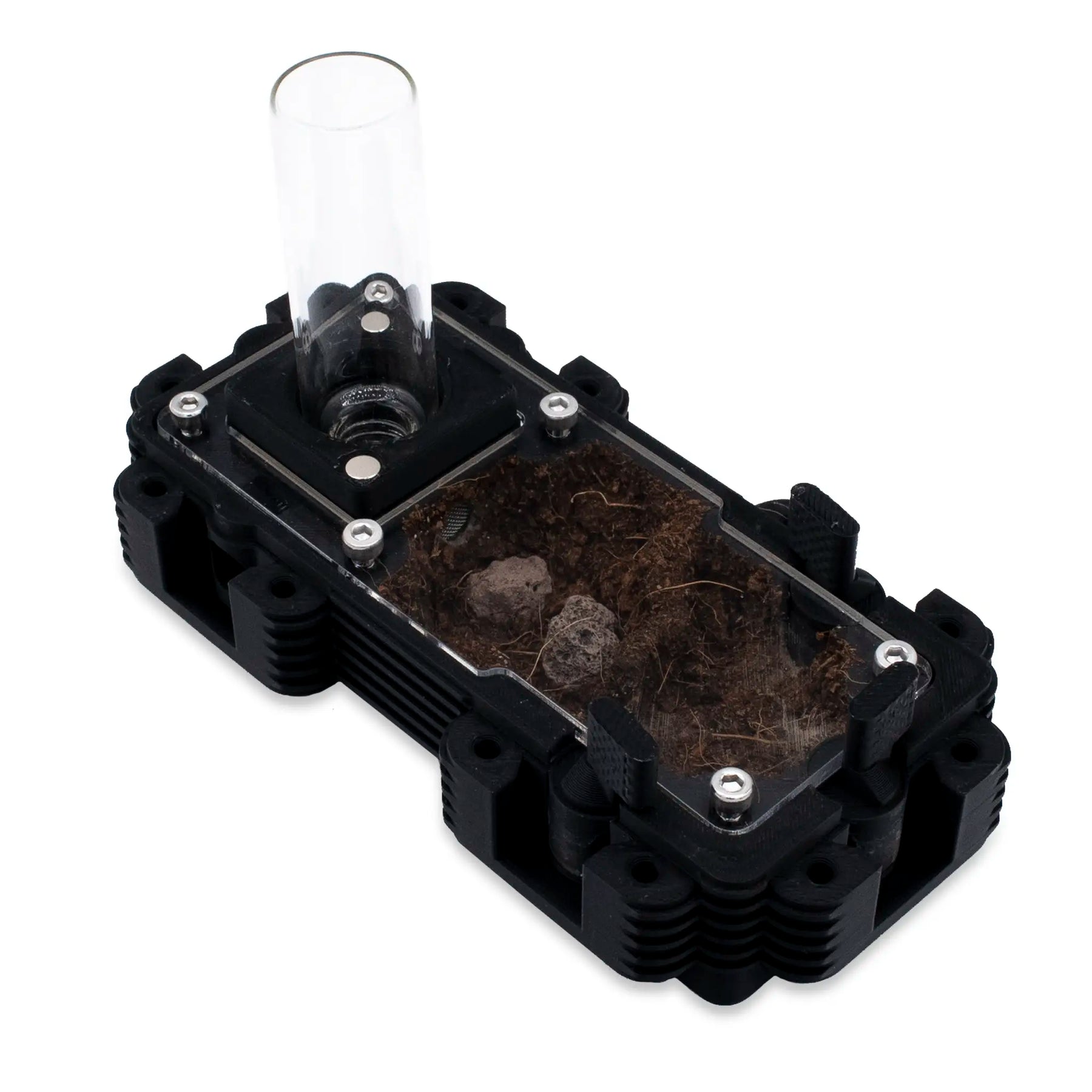 Monitorize a sua colónia desde a fundação, com uma rainha, até milhares de obreiras, sem qualquer alteração , graças ao escalonamento progressivo e aos conectores seguros. Com material Natura indestrutível, sistema HydroX opcional (10/30/100 ml, 4 saídas ajustáveis) e ventilação, oferece controlo ambiental, estabilidade e observação perfeita .
