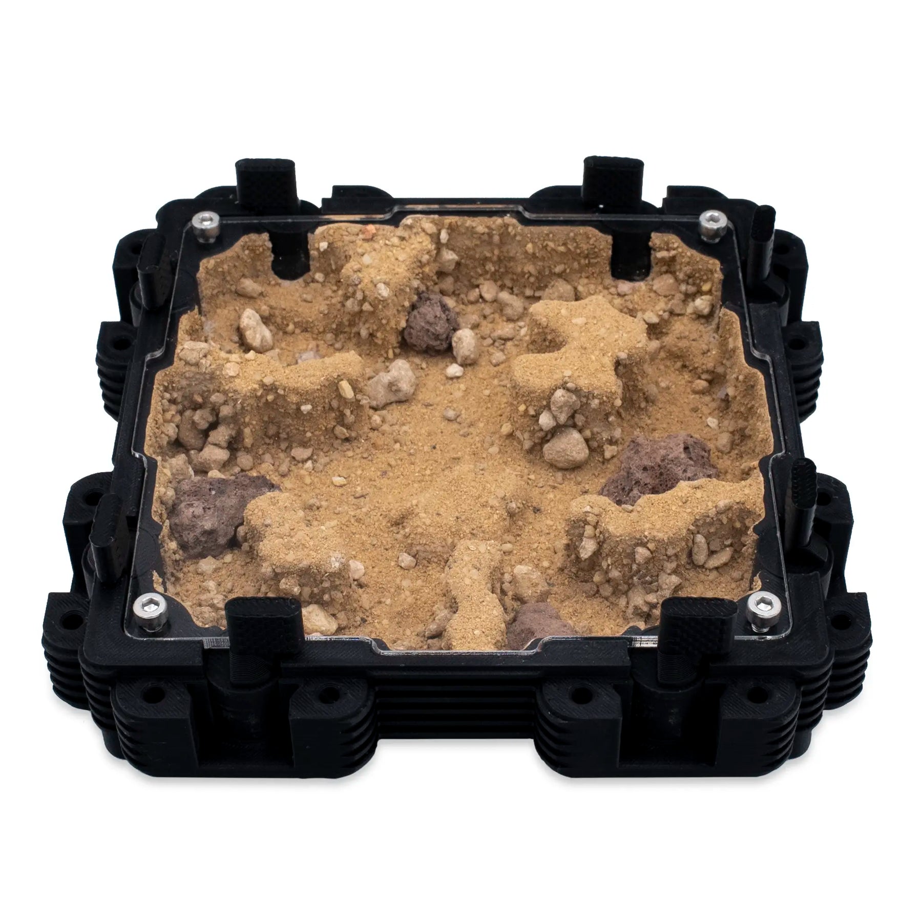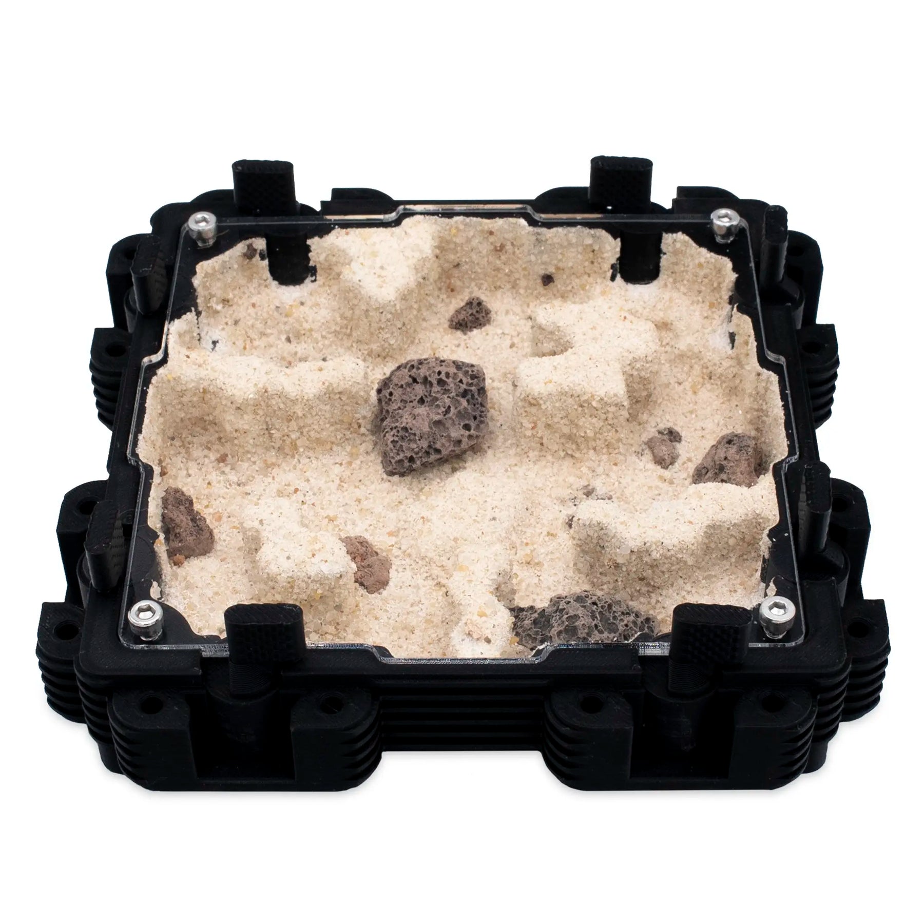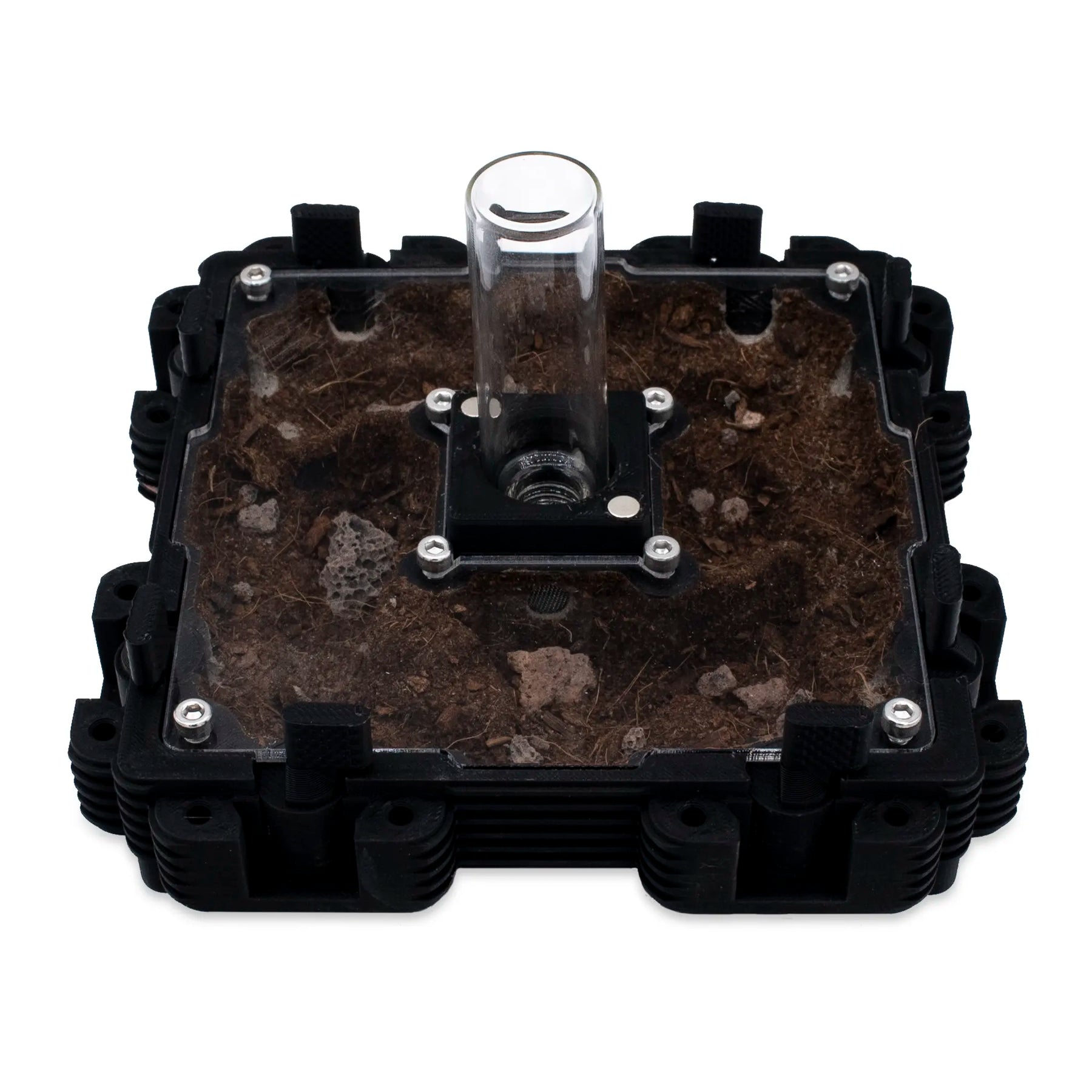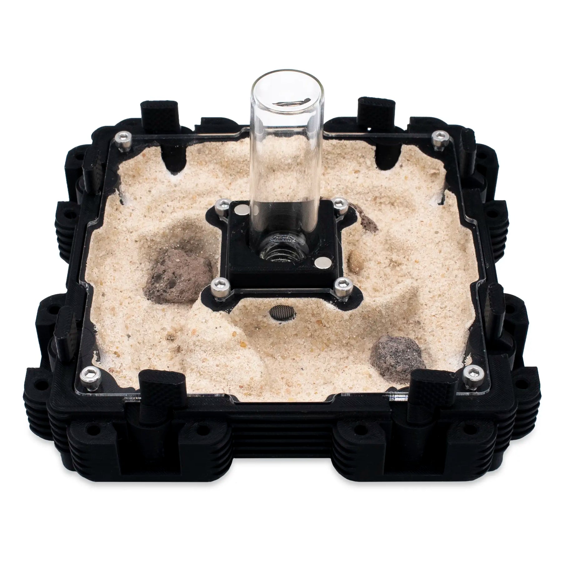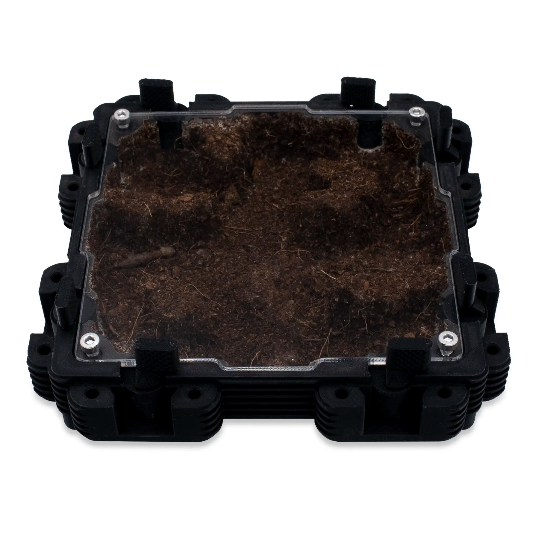 Monitorize a sua colónia desde a fundação, com uma rainha, até milhares de obreiras, sem qualquer alteração , graças ao escalonamento progressivo e aos conectores seguros. Com material Natura indestrutível, sistema HydroX opcional (10/30/100 ml, 4 saídas ajustáveis) e ventilação, oferece controlo ambiental, estabilidade e observação perfeita .
