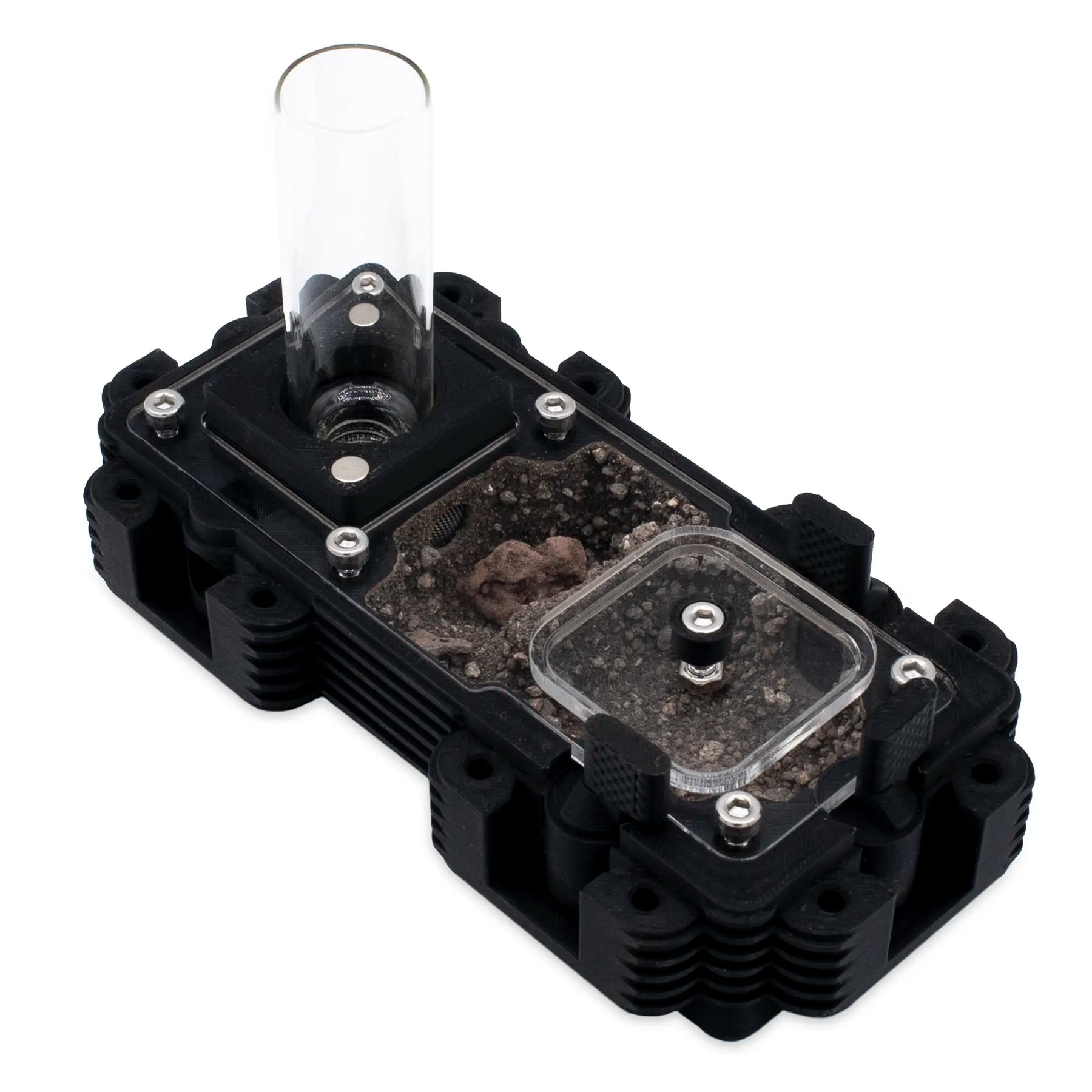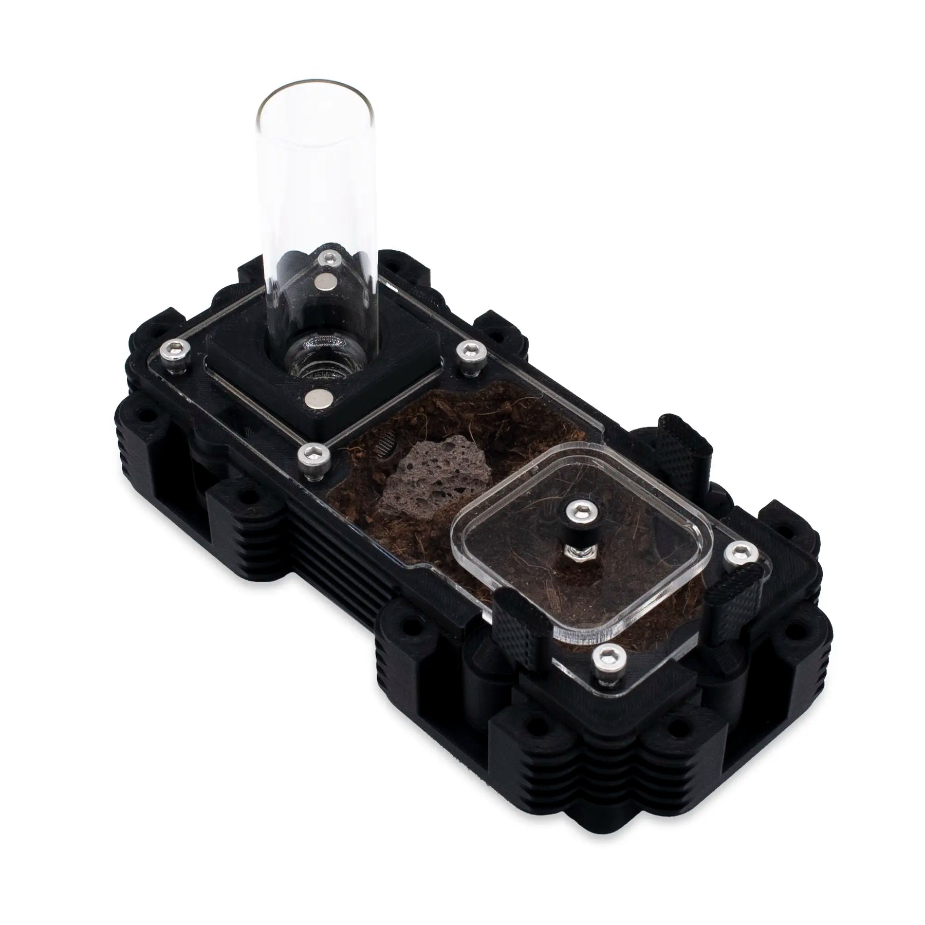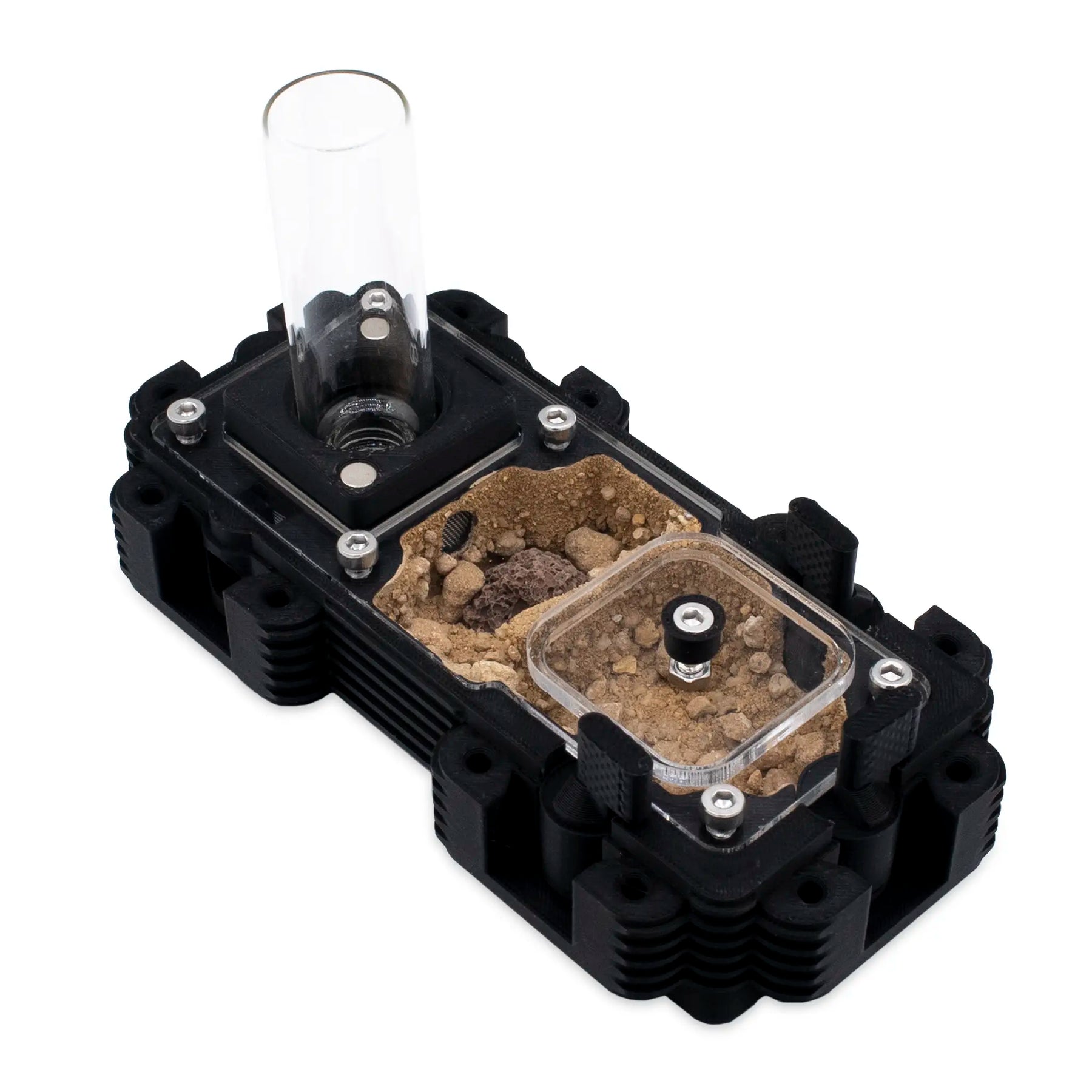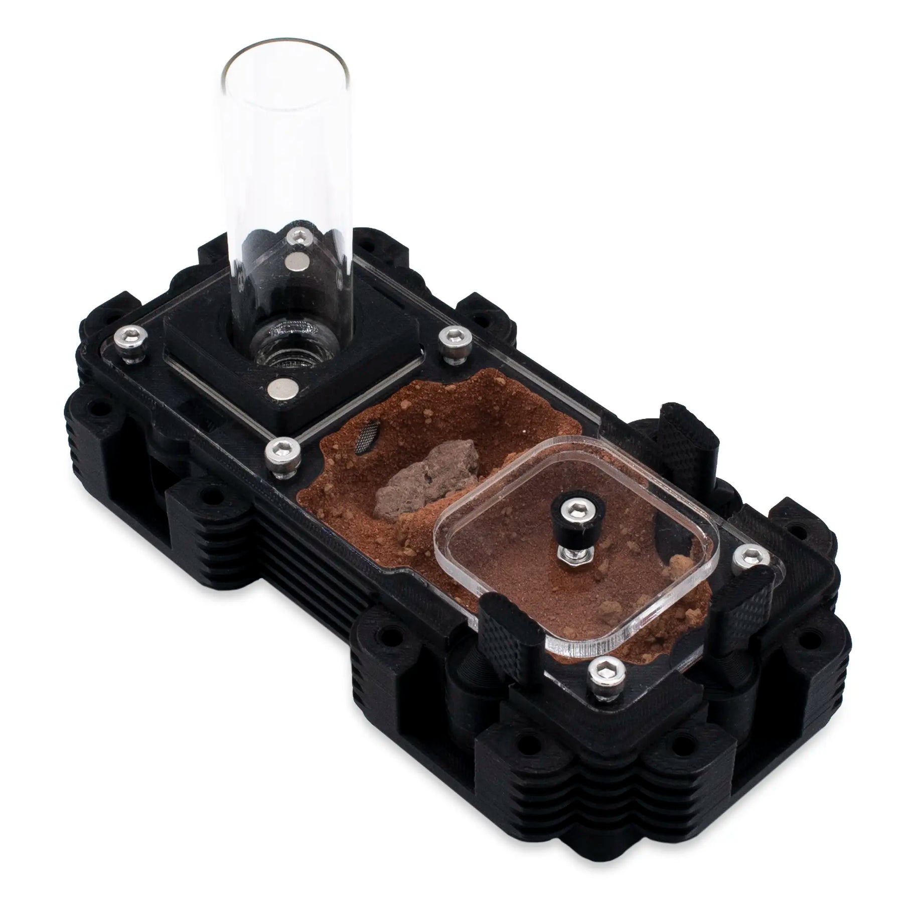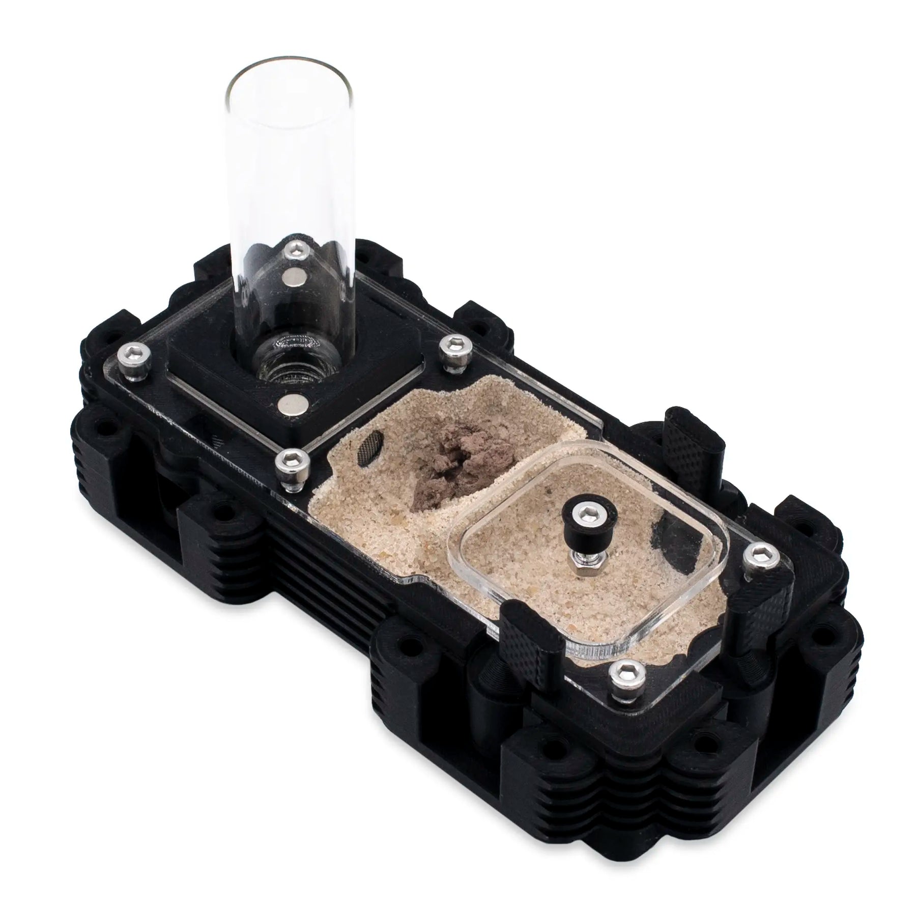 Monitorize a sua colónia desde a fundação, com uma rainha, até milhares de obreiras, sem qualquer alteração , graças ao escalonamento progressivo e aos conectores seguros. Com material Natura indestrutível, sistema HydroX opcional (10/30/100 ml, 4 saídas ajustáveis) e ventilação, oferece controlo ambiental, estabilidade e observação perfeita .
